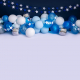 Double backdrop incorporating floor and back created by Karen Wiltshire especially for cakesmash and first birthday shoots. Two tone light and dark blue background with various coloured baloons and stings of stars.