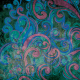 Art deco abstract image of multicoloured swirls with a blue bias. Most suited to vinyl