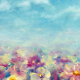 A feild of colourful flowers leading up to a bright blue sky in the form of an oil painting.